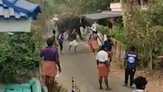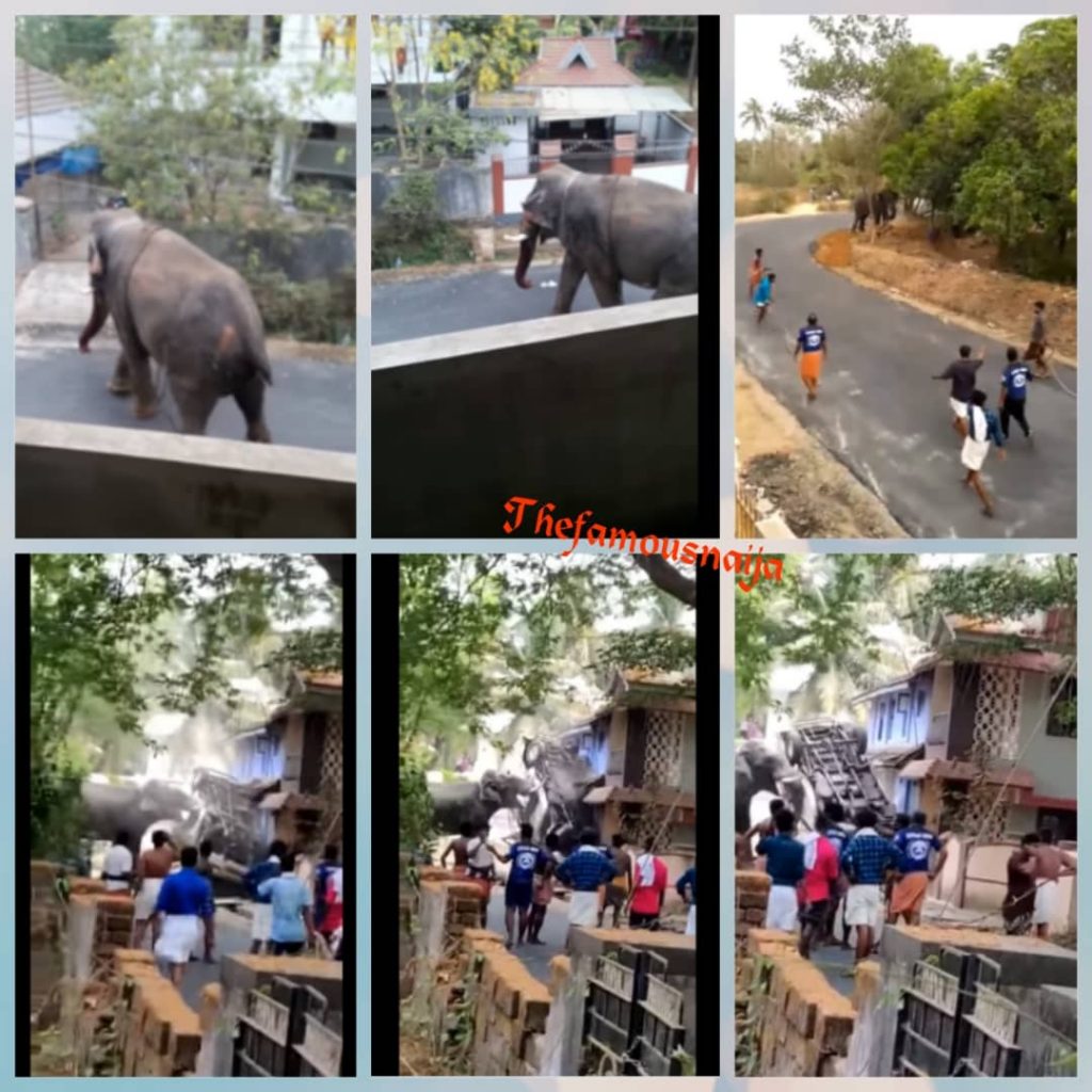Elephant goes on rampage in Kerala’s Palakkad district in India, creates panic among residents.