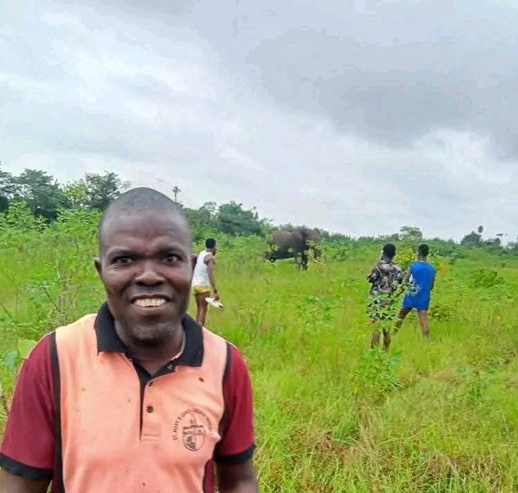 A wandering elephant was spotted in Ilotombi community, Andoni Local Government Area of Rivers State.