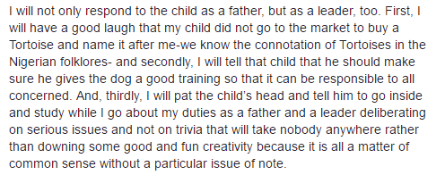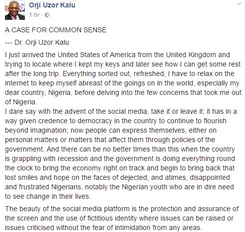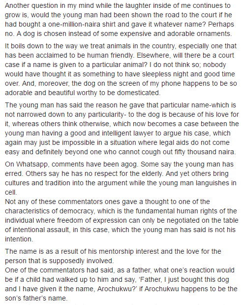 Former Abia State Governor, Orji Uzor Kalu shared via his Facebook page. This is in reaction to the arrest and trial of the trader who named his Dog Buhari.