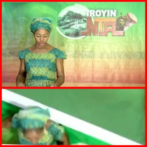 A presenter working for the Nigerian Television Authority was made to flee for her life after a wooden backdrop fell on her live on television.