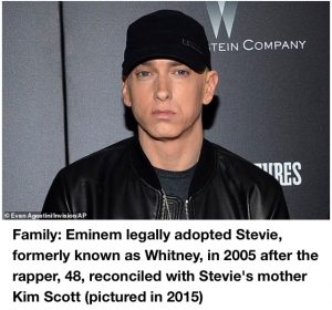 Eminem legally adopted Stevie, formerly known as Whitney, in 2005, after the rapper, 48, briefly reconciled with Stevie’s mother Kim Scott, 46.