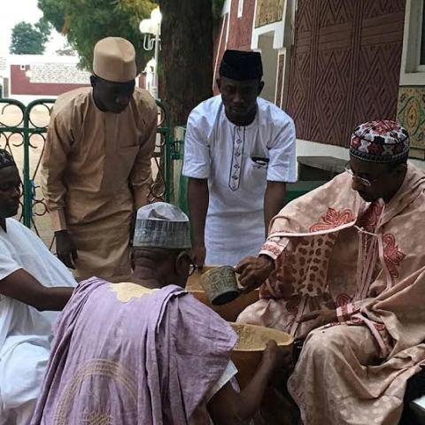 The Emir of Kano, Muhammadu Sanusi is pictured with some of his subjects getting prepared for Eid al-fit’r celebration.
