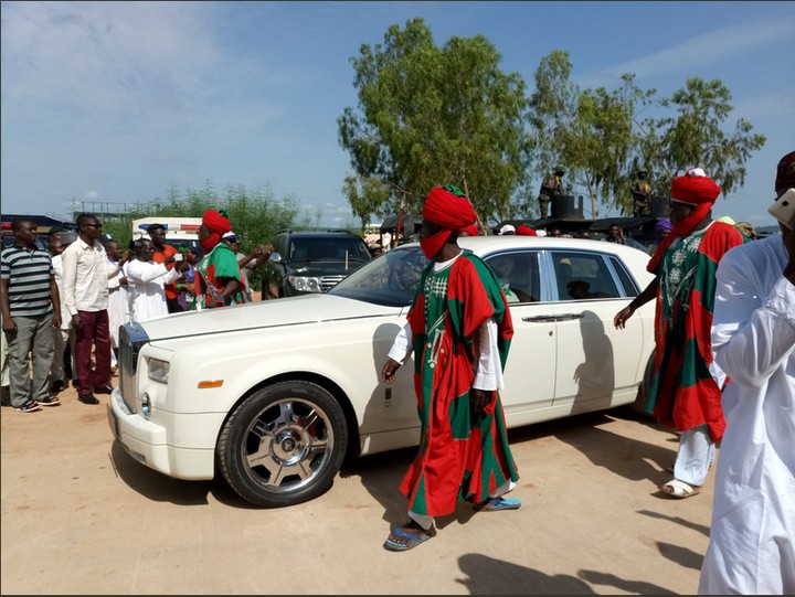 The Emir of Kano State, Muhammadu Sanusi II made a grand entrance with his luxurious Rolls Royce to the venue where president Muhammadu Buhari commissioned an integrated Feed Mill and Poultry in Chikun Local Government Area of Kaduna state. The monarch was received by the state governor, Nasir El-Rufai and other functionaries.The integrated feed mill and poultry was constructed at $150 million Olam International, a worldwide agri-business firm.