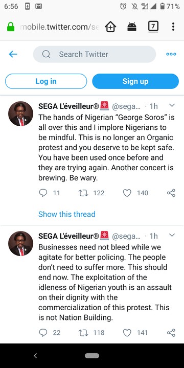 The hands of Nigerian “George Soros” is all over this and I implore Nigerians to be mindful. This is no longer an Organic protest and you deserve to be kept safe. You have been used once before and they are trying again. Another concert is brewing. Be wary.