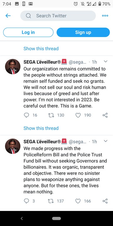 We made progress with the PoliceReform Bill and the Police Trust Fund bill without seeking Governors and billionaires. It was organic, transparent and objective. There were no sinister plans to weaponize anything against anyone. But for these ones, the lives mean nothing.
