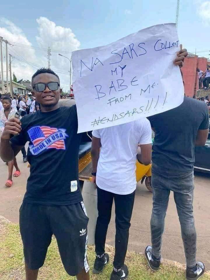 Today’s #EndSARS protests come with funny placards inscriptions and photos.