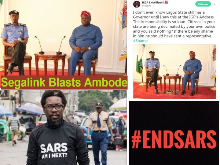 Segalink in a Twitter reaction on Tuesday, April 16, said; “I don’t even know Lagos State still has a Governor until I saw this at the IGP’s Address. The irresponsibility is so loud. Citizens in your state are being decimated by your own police and you said nothing? If there be any shame in him he should have sent a representative.”