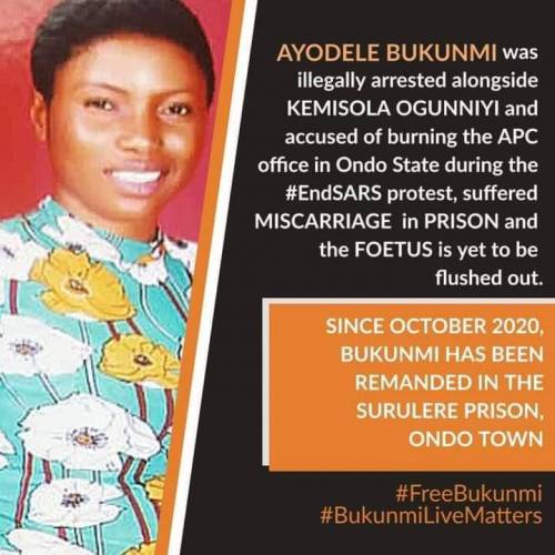 “Great thanks to Tope Temokun, the attorney who took up this case & great citizens of conscience who stood up (and continue to stand up) against @mBuhari’s tyrannical regime! #RevolutionNow #BuhariMustGo.” Bukunmi was arrested alongside Ojo Samuel, Ani Obinna and Kemisola Ogunniyi on October 22, 2020.