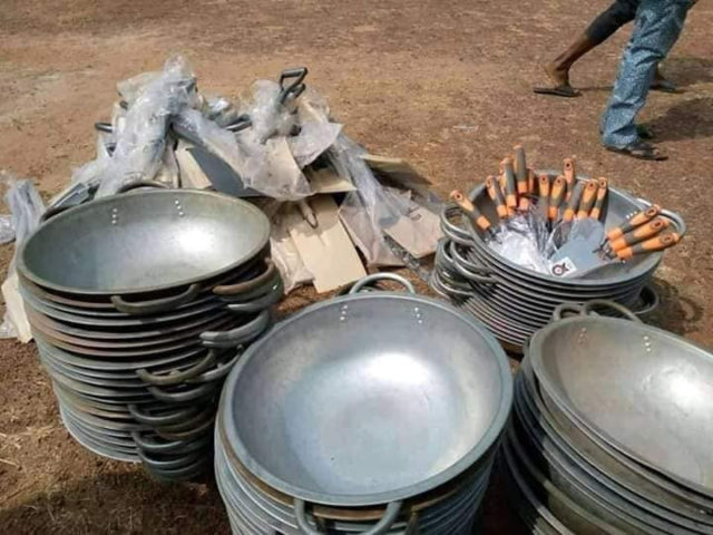 According to Ugwuanyi, the local government boss shared 50 head pans, 50 shovels and 20 trowels.