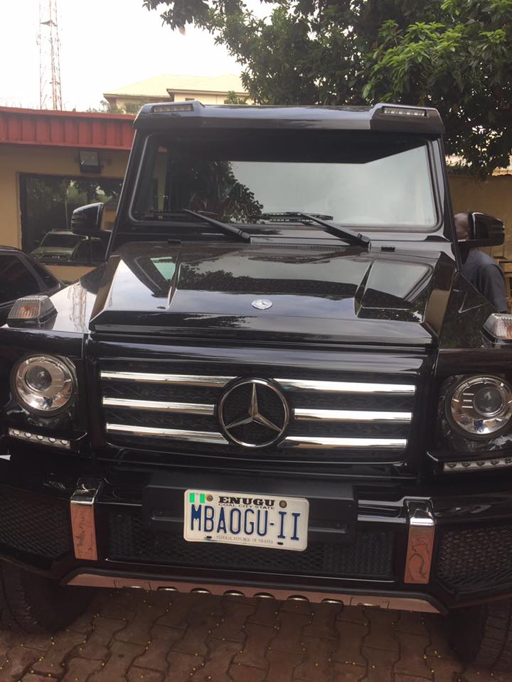 The luxurious vehicle was spotted along other cars at his renovated palace and a personalized plate number with the inscription MBAOGU 11.
