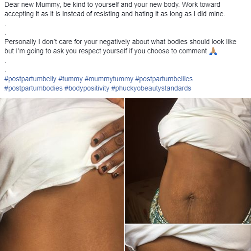 But she’s past that stage and she took a photo of her belly today to share to all mothers going through the same thing and let them know that they should work towards accepting their postpartum belly.