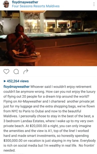 'Everybody is rich on social media, I'm wealthy in real life' - Floyd Mayweather reveals he spent $300k on holiday - 9jaflaver
