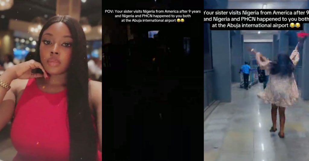 POV: Your sister visits Nigeria from America after 9 years Nigeria and PHCN happened to you both at the Abuja international airport.” , The video’s caption reads.