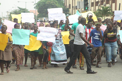 Evicted residents of Otodo-Gbame, Lekki protest at Lagos State Secretariat (photos)
