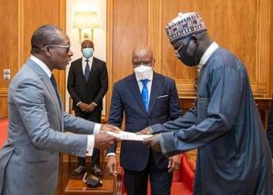 Nigeria’s former Chief of Army Staff, Tukur Buratai has presented his Letter of Credence to President of Benin Republic, Patrice Talon on Tuesday.