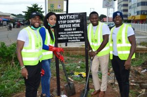Ex Beauty Queen And Team, Defy Heavy Rainfall To Clean Abuja Street Today