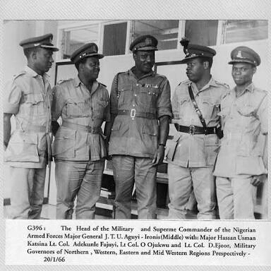In January 1966, a group of army officers, led by Major Chukwuma Nzeogwu, overthrew the central and regional governments of Nigeria, killed the prime minister, and tried to take control of the government in a failed coup d’état. Nzeogwu was countered, captured and imprisoned by major general Johnson Aguiyi-Ironsi.