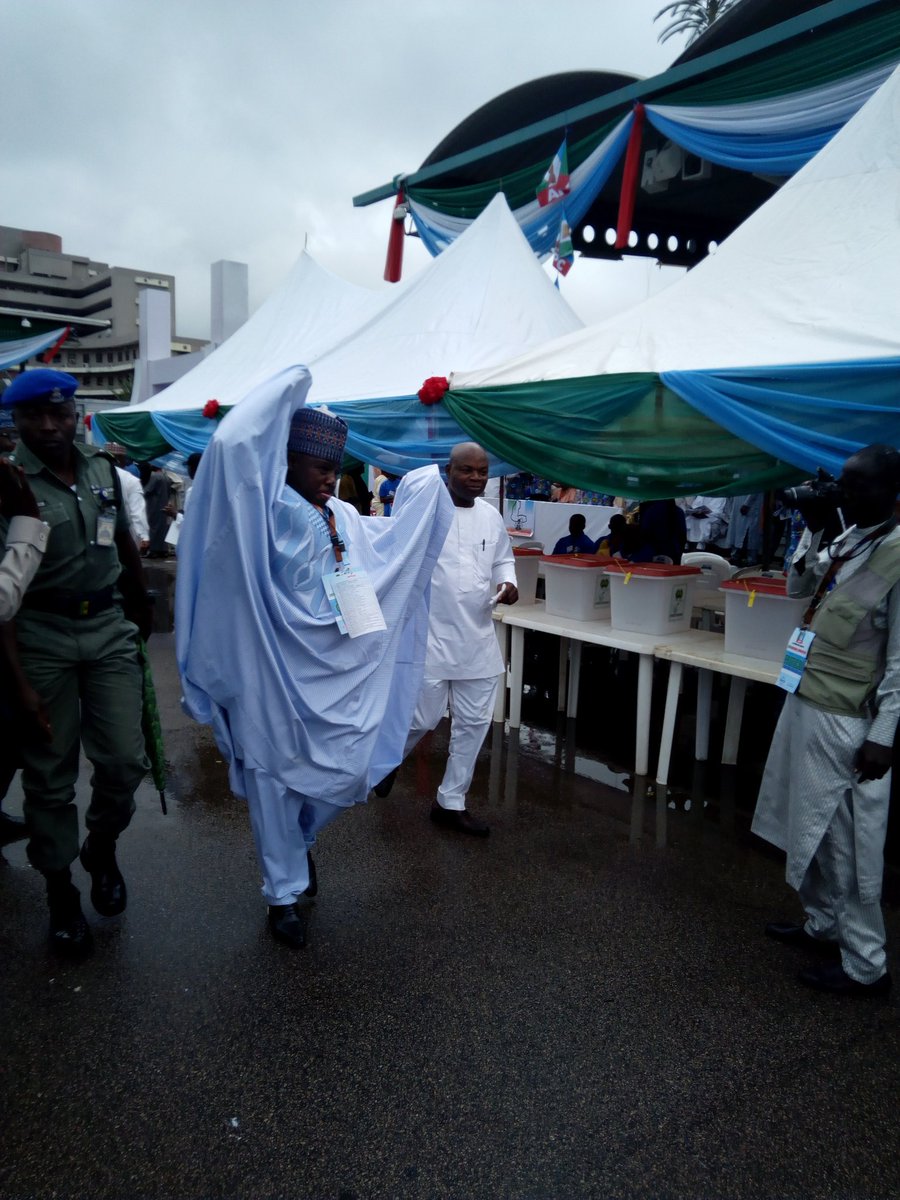 Former Governor of Borno Statw, Senator Ali Modu Sheriff arriving and here is Senator Musiliu Obanikoro at the venue of APC National Convention.
