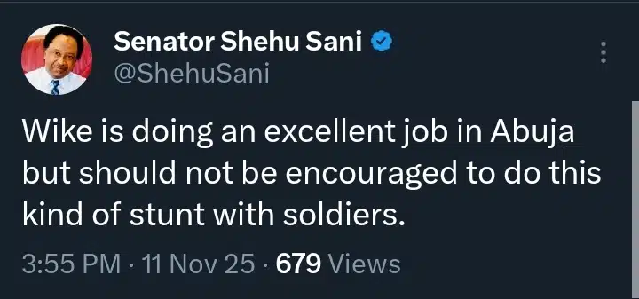 In a post on X (formerly Twitter), the former lawmaker, Shehu Sani, praised Wike’s performance but cautioned him against such encounters.