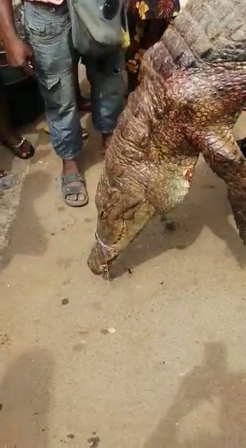 The man who killed the crocodile tied it on his motorcycle to take it home with him. When asked, he said he killed the crocodile in Abata Umueze. The crocodile was shot dead.