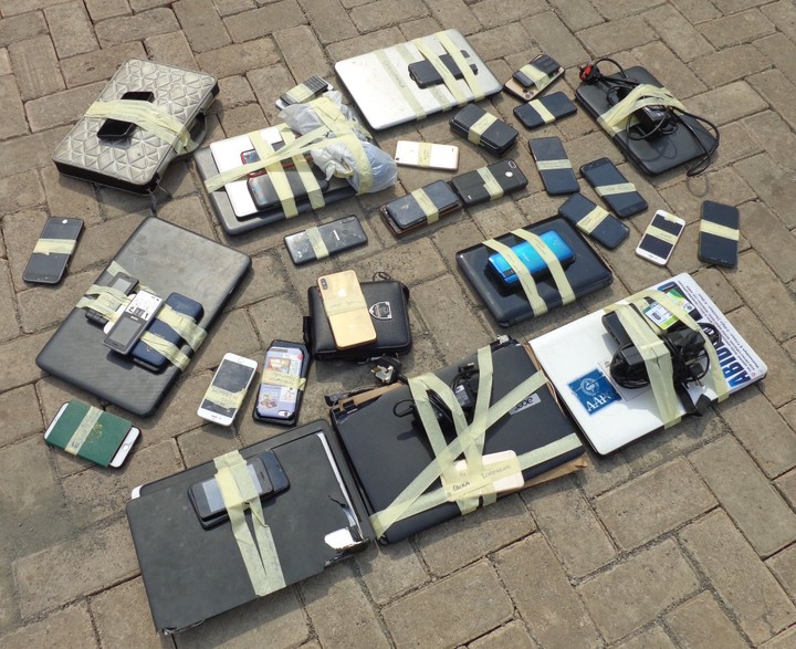 In the course of the arrest, five exotic cars; a brand new Mercedes Benz GLK with registration number HAL-160-MX, Lexus IS 250 with registration number UMZ-145-MX, Toyota Avalon XLS with registration number KRD-641-FL, Lexus ES 350 with registration number GWA-489-KZ, Lexus ES 330 with registration number AAH-25-AE were recovered from them. Other incriminating materials recovered from the suspects include various mobile phones and laptops. They will soon be charged to court as soon as the investigations are concluded.