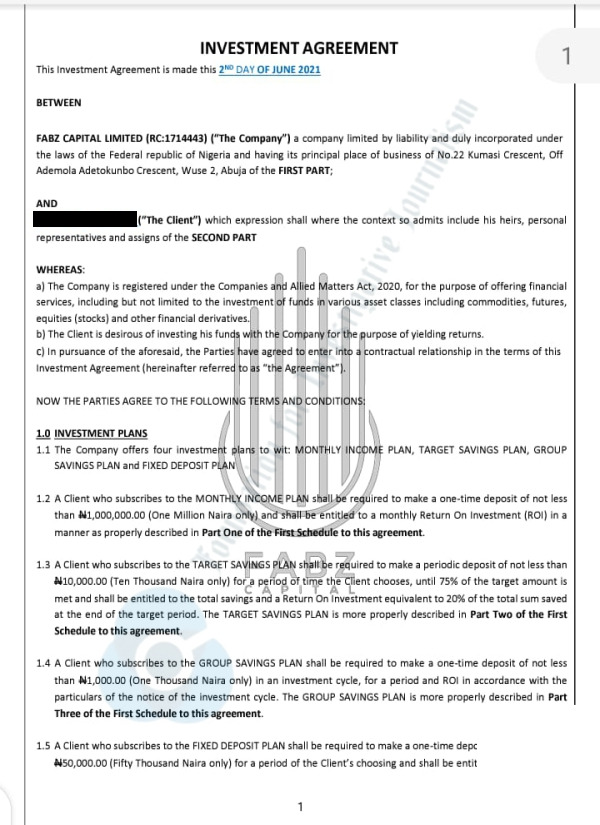 An investor, who asked not to be named, had initially invested some money with Fabz Capital and got paid his capital and ROI in full.