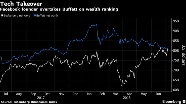 Facebook Inc. co-founder Mark Zuckerberg has overtaken Warren Buffett as the world’s third-richest person, further solidifying technology as the most robust creator of wealth.