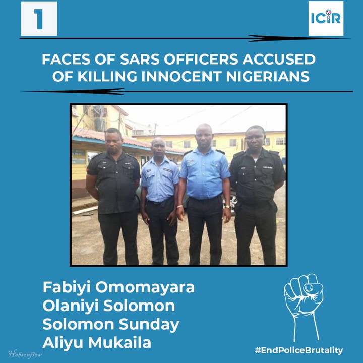 Today, THEICIR (The International Centre for Investigative Reporting (#THEICIR) is an independent, nonprofit news agency that seeks to promote transparency and accountability.) has provided us the names and faces of SARS officers accused of killing innocent Nigerians;