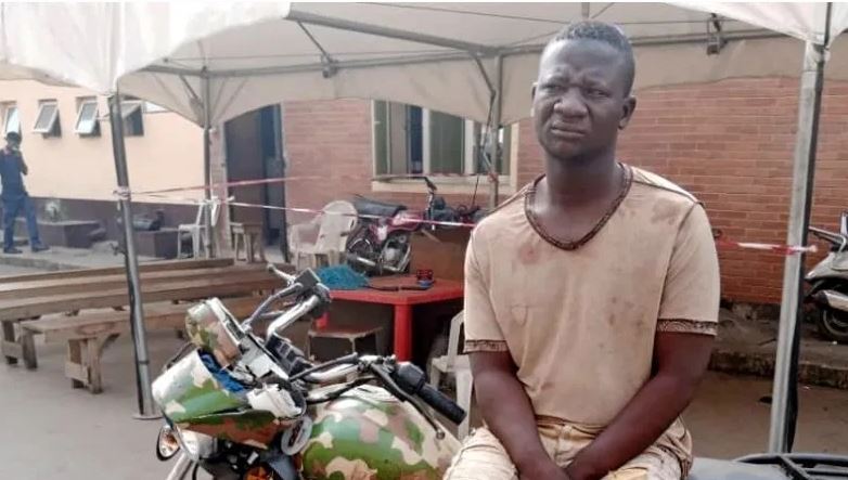 Mr Mohammed was arrested at the airport area of Lagos, riding a motorcycle painted with the colours of the Nigerian Army uniform and parading himself as a soldier.