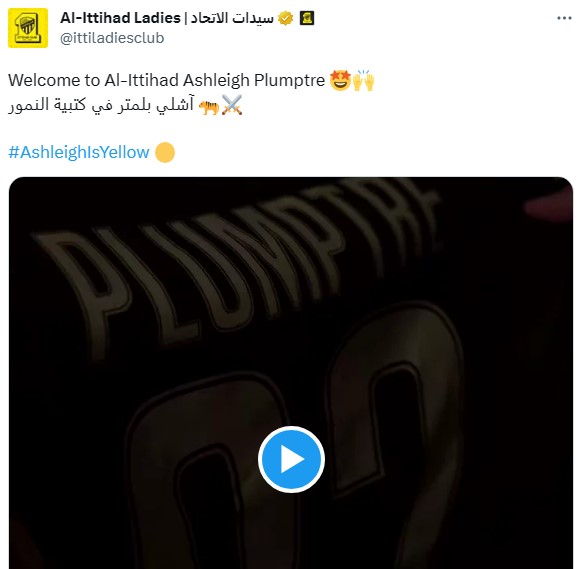 Grateful to have signed for Al-Ittihad 🐅 Excited to start this journey alongside some incredible human beings. My journey of stepping into more of myself continues…It’s more than football 💛