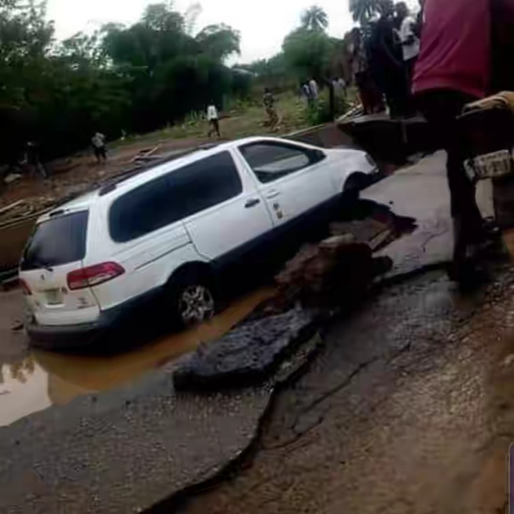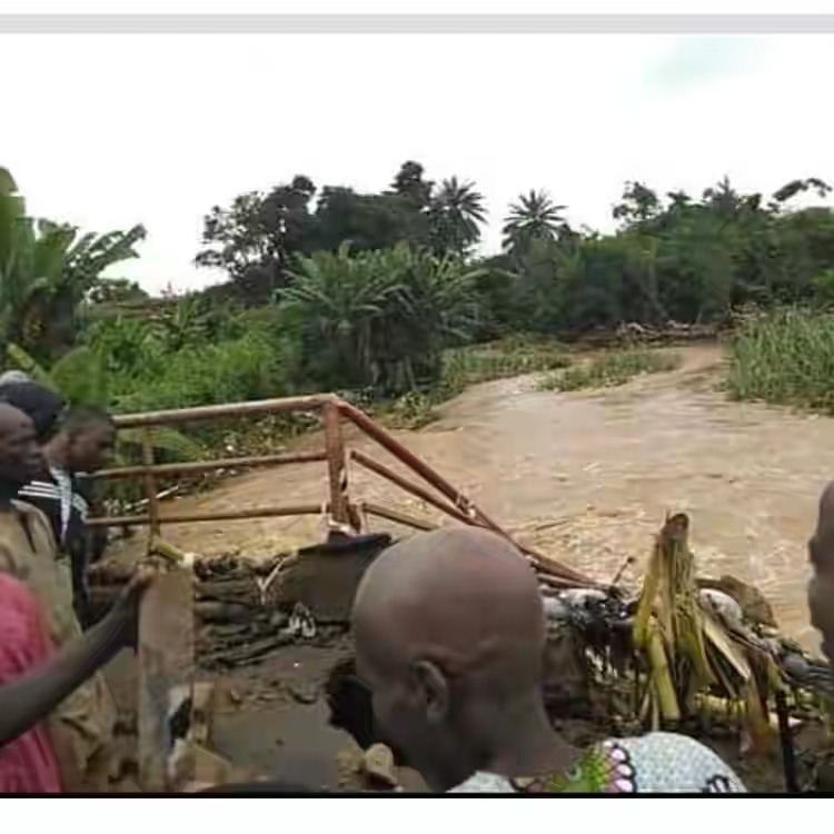After a heavy down pour yesterday night, a bridge linking Ado-Ekiti town and the The federal polytechnic ADO-ekiti and Afe Babalola university went down, taking with it a Toyota Seinna bus.