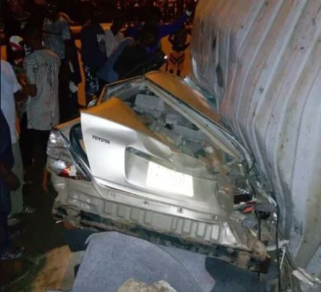 He said investigations at the scene of the accident revealed that a truck with a 20ft container fully loaded with unknown items with registration number LSD-611XU was on top speed, had a break failure, lost control and subsequently fell on the Toyota Camry with registration number FKJ-732FS and the three motorcycles.