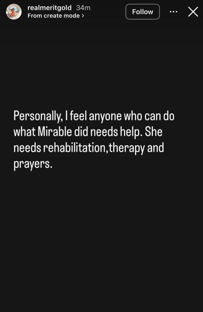 In a post shared on Instagram, Merit argued that what Mirabel needs is help.