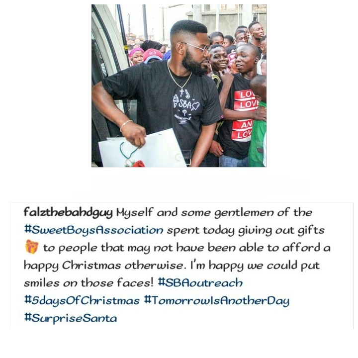 Falz and Other SweetboysAssociation Spent Today Giving Out Gifts to People that may not have been able to afford a happy Christmas.
