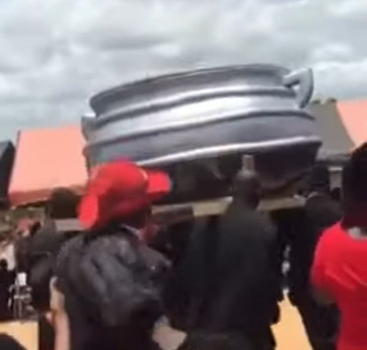 Family bury their mother in grand-style by using a majestic cooking pot as côffin in Ghana.