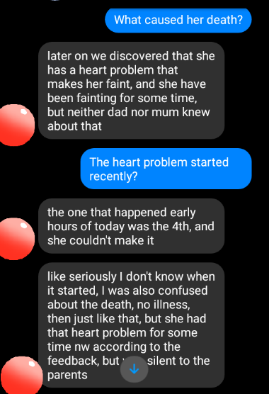 They added that she started “fainting” recently and the one that happened at her birthday party and ultimately led to her death was the fourth time she fainted.