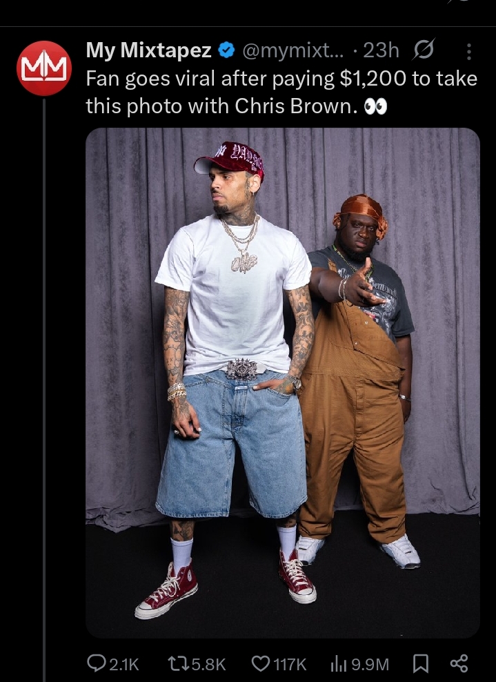 A fan has made headlines amid swirling reports of paying $1,200 for a photo with renowned American singer, Chris Brown.