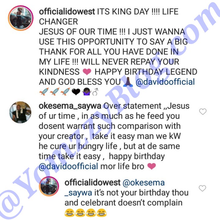 DMW Artiste, Idowest who took to his social media space to celebrate his boss, Davido on his birthday by referring to him as “Jesus Of Our Time” has been slammed by one of his fans.