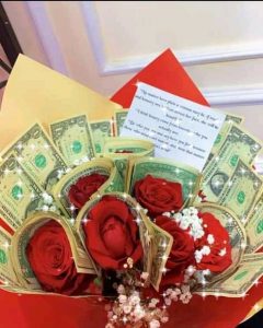 Fans gift Big Brother Naija star, Liquorose a bouquet made with hard currency.