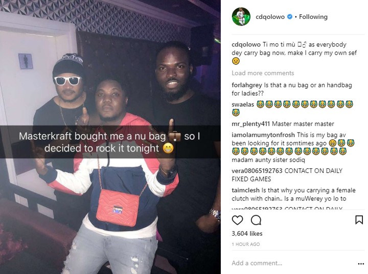 Nigerian rapper, CDQ posted a picture of himself rocking a new bag bought for him by Masterkraft his producer.