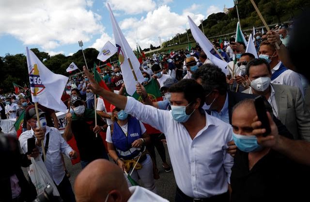 Saturday’s protests took place at a time when Portuguese authorities are worried about a wave of new coronavirus cases across Lisbon’s suburbs and have been forced to reintroduce certain lockdown measures.