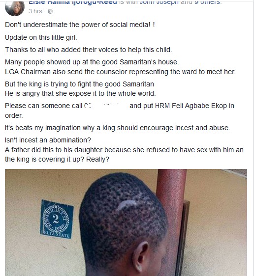 The local government chairman has also sent the counselor representing the ward to meet with the little girl to help serve justice. .