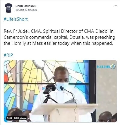 Rev. Fr. Jude, the Spiritual Director of Catholic Men Association (CMA) in Deido, Cameroon, was preaching the Homily yesterday while wearing a face mask before he paused for a moment and appeared to be struggling to breathe.