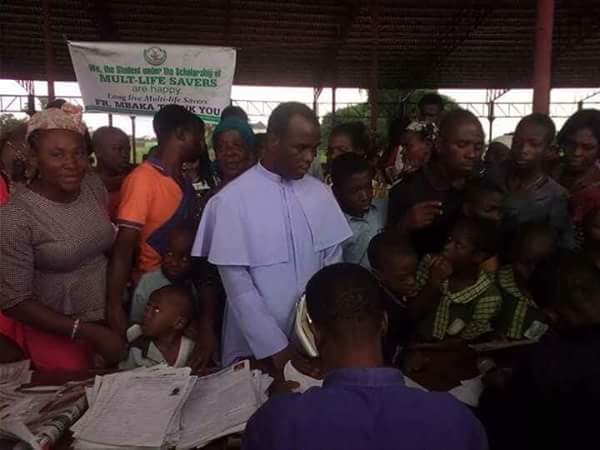 This is the life of Daddy FR. Mbaka, always giving out to the poor. May God bless Fr. Mbaka for us and protect and provide for him in Jesus mighty name Amen.Notice one thing about him?He is always very close to the masses and can not move without his bible. Nwa Ikuku I hail you!