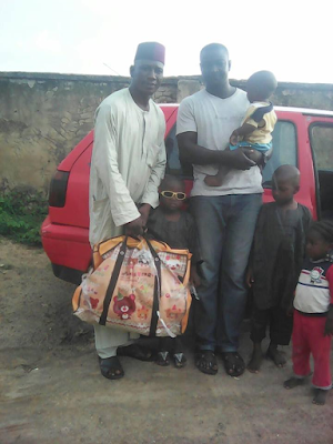 *That bag you see here contains toys and other materials for Abuather of four year old boy whose eyes were plucked out in Kaduna gets a car gift from a good Nigerian.