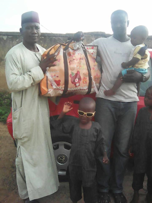 *That bag you see here contains toys and other materials for Abuather of four year old boy whose eyes were plucked out in Kaduna gets a car gift from a good Nigerian.