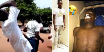IgbereTV captured a video of the father of the deceased holding onto the alleged officer who killed his footballer son.