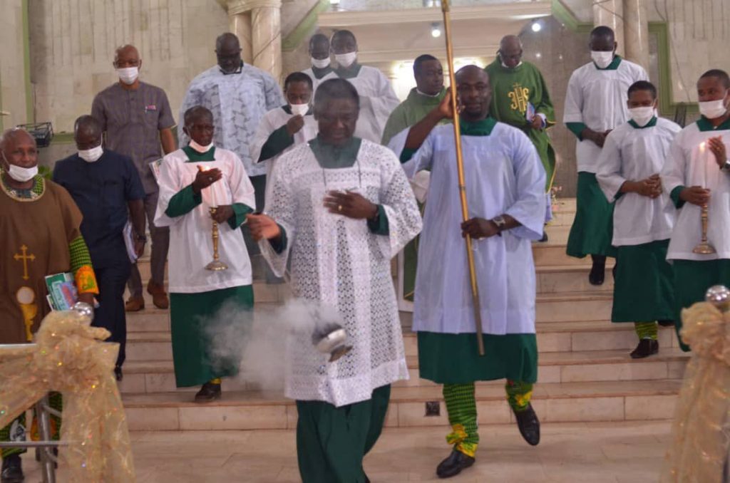 PHOTO NEWS: Edo State deputy governor, Phillip Shaibu, leads other Altar Boys during the Father’s Day celebration at St Paul’s Catholic Church in Benin City, Edo State, on Sunday.