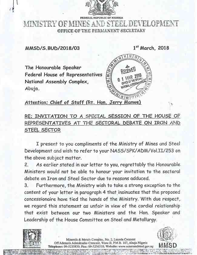 Read the letters signed by the Permanent Secretary of the Ministry of Mines and Steel Development, Dr Abdulkadir Mu’Azu, below:
