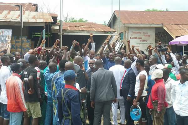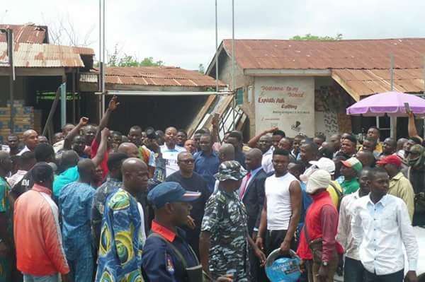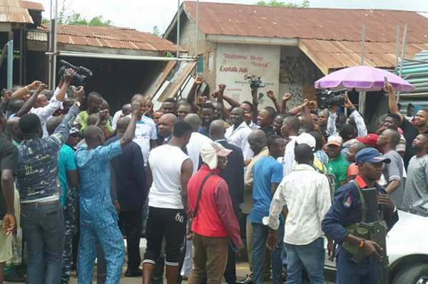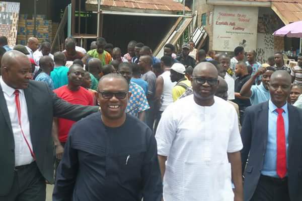 Below are photos of Governor Ayodele Fayose alongside former Anambra State governor, Peter Obi mobilising Igbo traders at Basiri area of Ado-Ekiti on Monday morning.